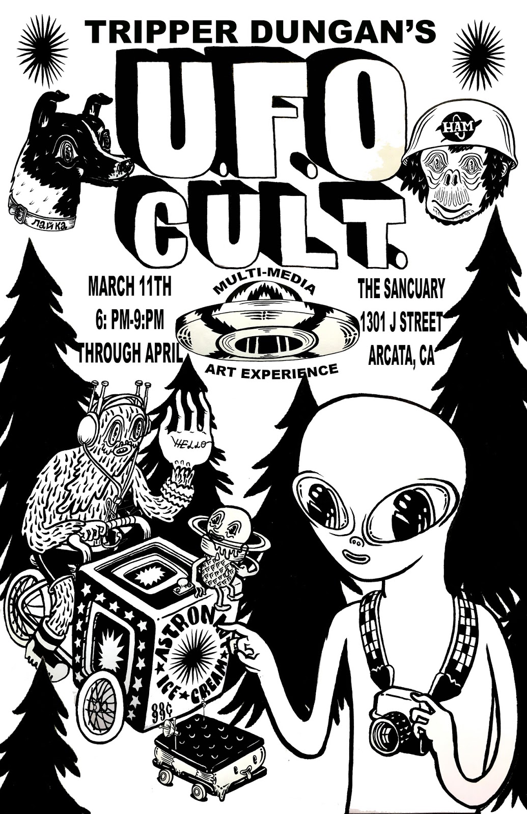 On March 11th I will be having the opening for UFO cult. A body of work celebrating the peculiarities surrounding UFO culture. There will be an audio visual show as well. Come early and touch my hand.